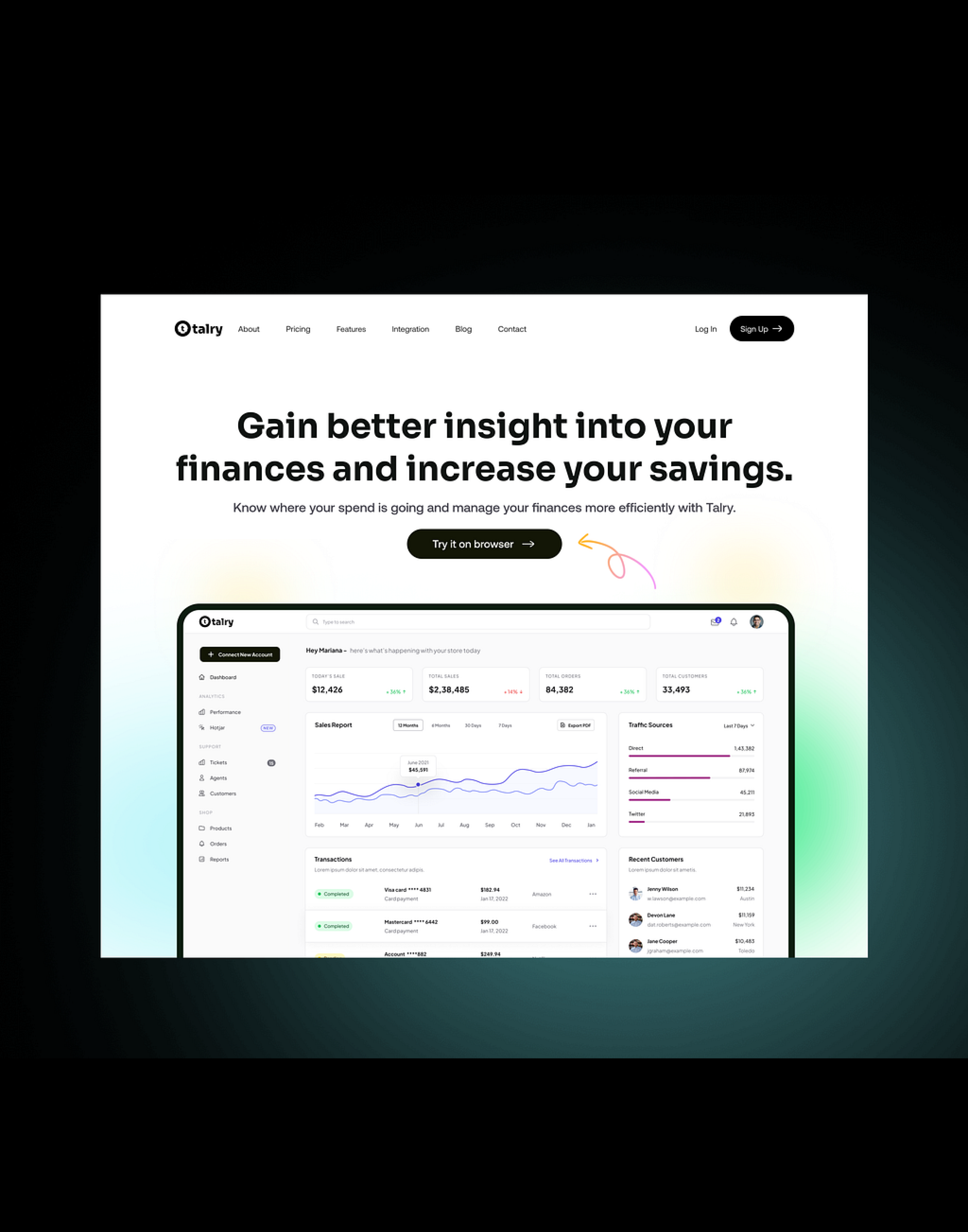 Interface to allow businesses manage their finances, read invoices and transactions, reach and keep customers.